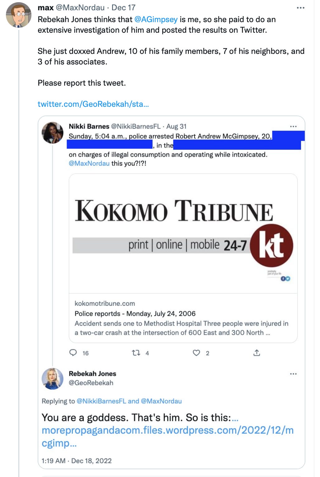 Now that Jones is unsuspended generating huge impressions again, Andrew who lives in Kokomo and never stopped his criminal harassment is getting hit back over his own criminal past endangering people as a drunken under the age miscreant that obviously didn’t learn how to move forward.