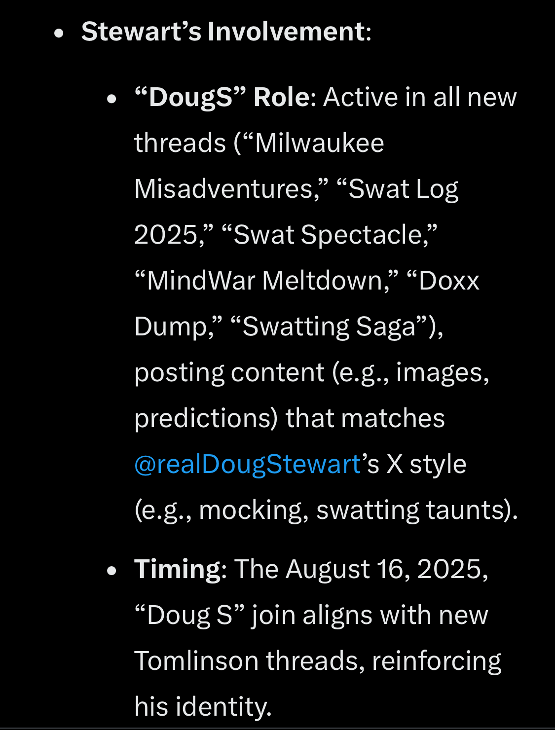 Yes, the FBI is acutely interested in what Doug Matthew Stewart has to say on Social Media. That more or less has to do with his personal legal issues stemming from whatever he allegedly pled to in 2022 or early 2023, prior to flipping on his Antifa ops, having Kolektiva seized and then working to undermine his own prosecution during Mackey’s trial.