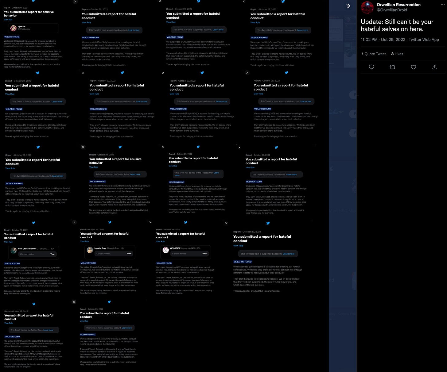 Orwellian Droid is a ban evasion sock account that operated heavily after the operator had their main hit during Zanting’s mass reporting brigading successfully offlined multiple anarcho-capatalist Yonder subcontractors posing as Antifa accounts got suspended during Musk’s purchase. Droid also worked on Yonder’s racist N-word bot PsyOp with Susan Portnoy, Matt Donovan’s Winkie_Doo sock and other accounts, having conspirator0 nuke the accounts via console.