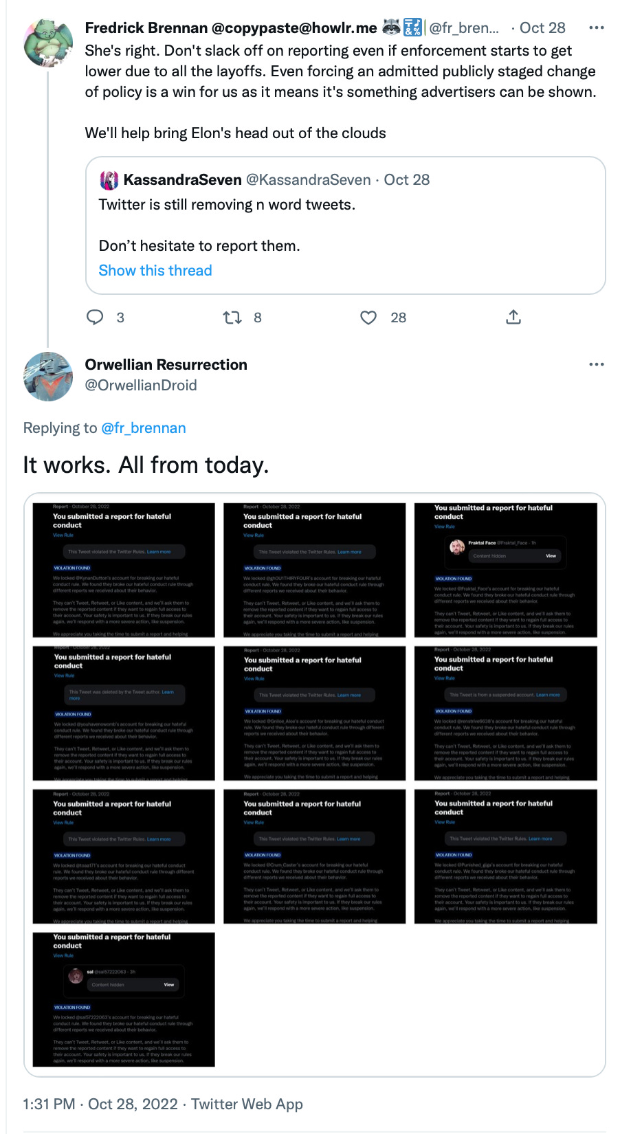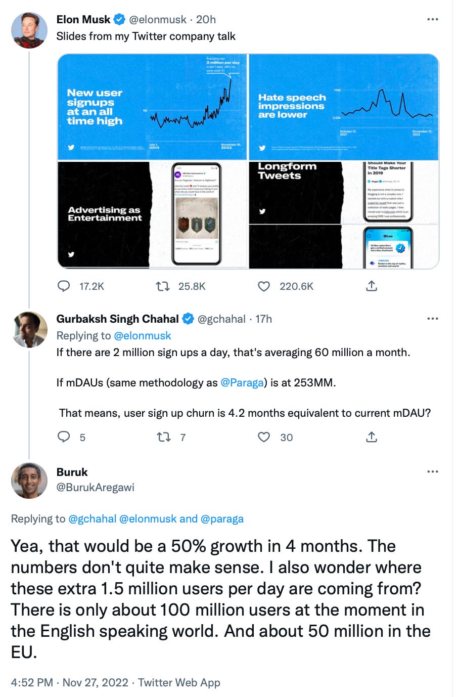 This effort was mostly for naught, as the press caught on to the racism, misogyny and violent ‘free speech’ that Musk was promoting via his personal feed. Note the chart Musk featured citing Portnoy and Remi’s work running the N—- bots. Also note that his deception was being called out over the surge in bot activity as moderation had been turned completely off.