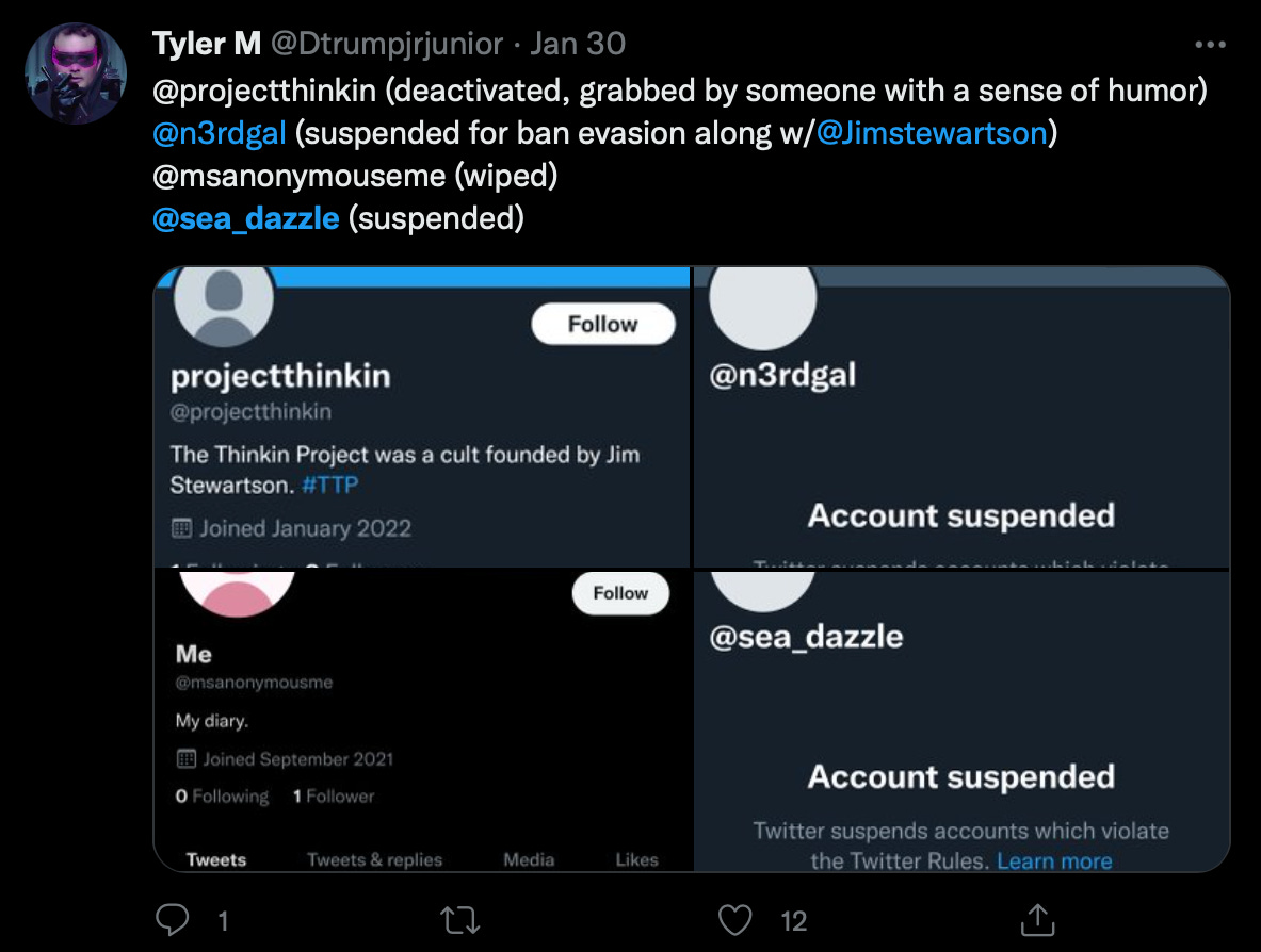 Yonder’s work has been to protect MAGA3x on Twitter, done in apparent conjunction with Twitter Safety. This means that not only should the Ops be held responsible, but Twitter Inc, that has allowed users to be psychologically harmed, doing nothing to stop that despite explicitly stating they would under their terms of service.