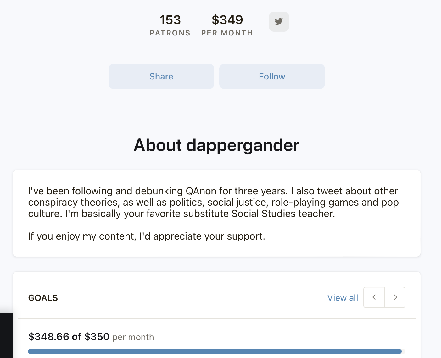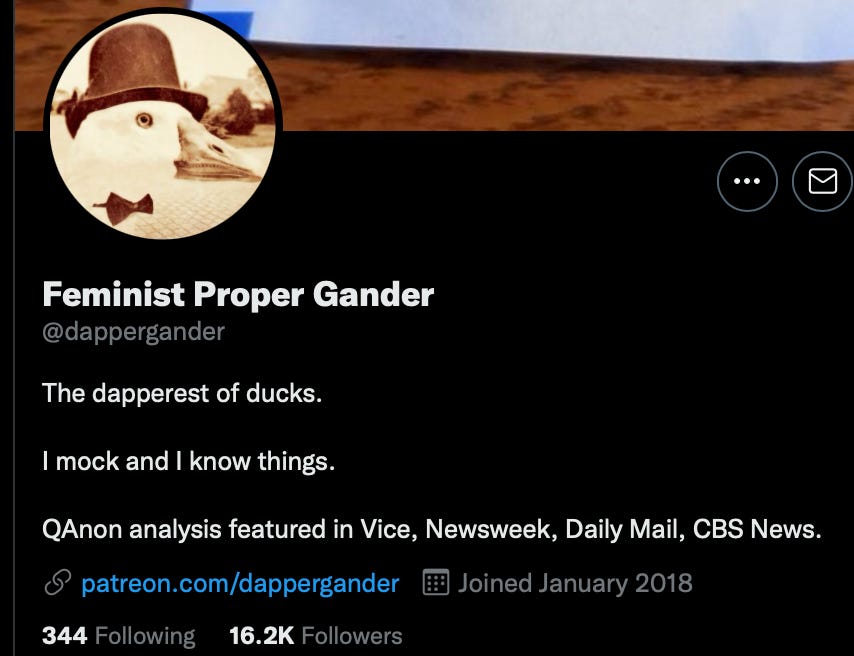 Some tweets, or rather Quacks the account has posted have been picked up by the media, hence the statement of being featured above. His or her grift is almost up to $350 per month, as per Patreon, at least at the time of this writing.
