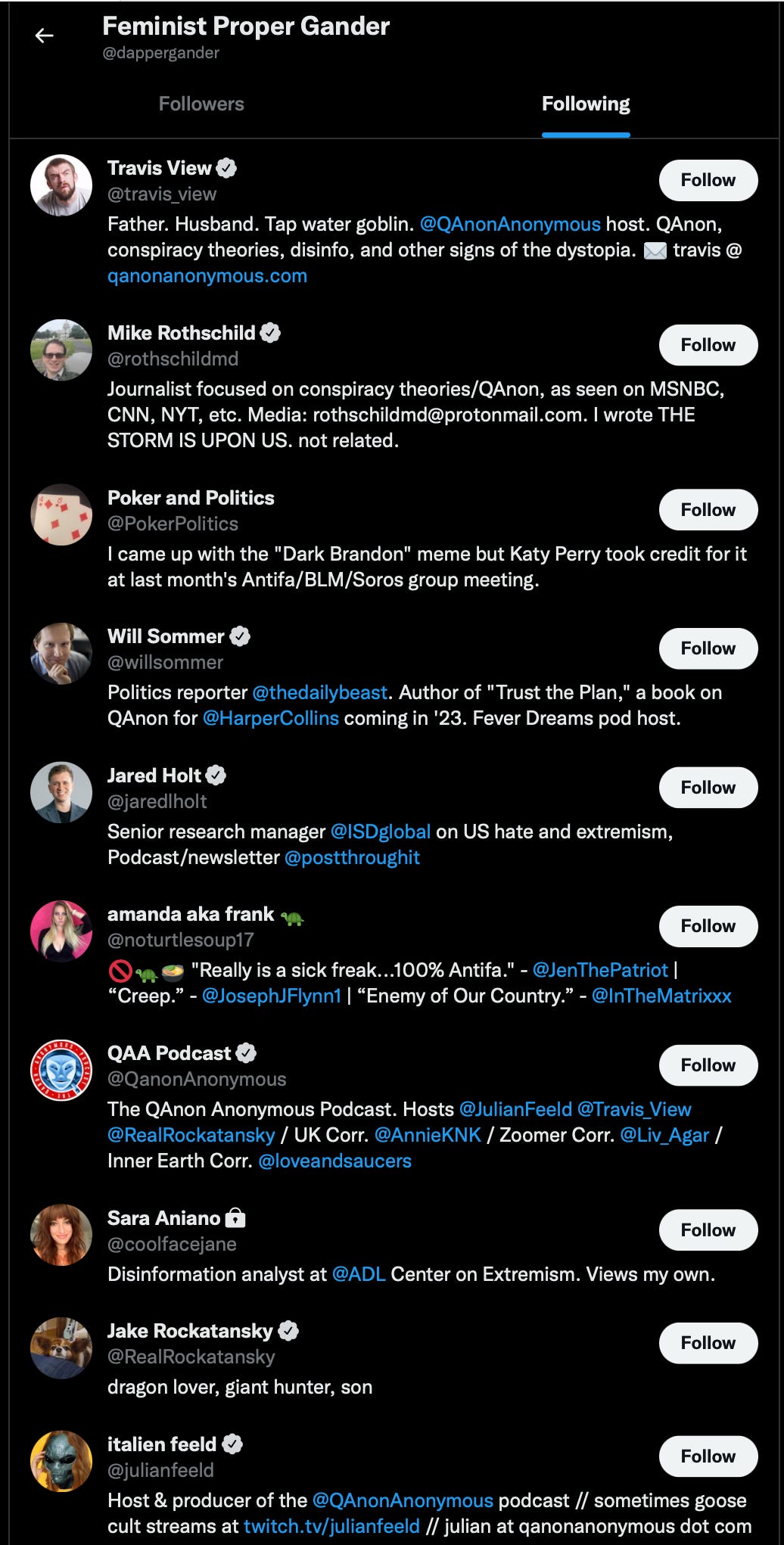 To the left the org used Mike Rothschild and QAA podcast to hook people, softening them up with the white-knighting Save the Children aspects, as well as the Sudoku like puzzle games, directing them onto other websites progressively more racist, misogynist, and violent. Like a frog in a slow boiling pot, the secret to keeping those victims in, is turning up the heat incrementally, allowing the new norm to be achieved until it is too late for the frog. Same principles applied.